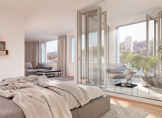 | *Die Visualisierungen der Loftwohnung dienen lediglich dazu ein Raumgefühl zu verleihen. Die Materialisierung und die Details können von der tatsächlichen Ausführung abweichen. |